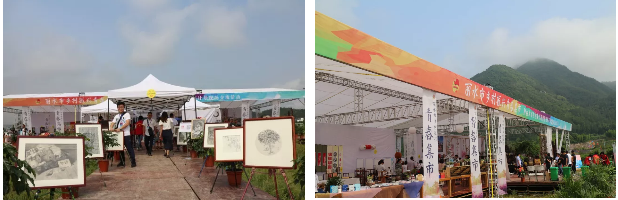 缙云工艺美校的行为艺术、古琴艺术协会的琴艺表演、江南谣杨的爽口杨梅果酒、庆元逐木人文化的传统木工技艺、浙江山水拍卖的公益拍卖献爱心等等。