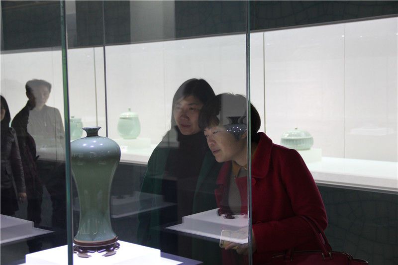 陈红艳副总(右)与杨玉英监事(左)在鉴赏龙泉青瓷
