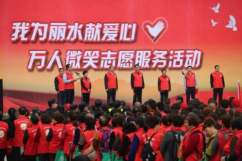 3月4日上午,山水集团小荷志愿者分队15名队员,同莲都区10800多名志愿者聚在丽水市纳爱斯广场,拉开了“我为丽水献爱心”万人微笑志愿服务活动的序幕,志愿者们的脸上带着暖暖的微笑,丽水电视台主持人老白高亢昂扬的宣读了 “我为丽水献爱心”万人微笑志愿服务活动倡议书,丽水志愿积分第一达人厉志华带领全体志愿者重温志愿者誓词,场面既暖心又催人奋进。