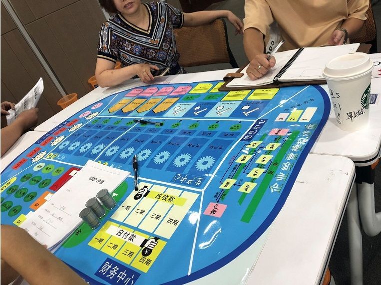 本次ERP培训分两期进行,每期培训分六组,每组5-6人,分别担任企业首席执行官(CEO)、财务总监(CFO)、市场总监(CMO)、生产总监(PMO)、采购总监(PDO)以及财务助理(6人组)。培训时间两天,模拟企业六年经营。第一年为初始年,由培训讲师带领学员经营,并讲解各个环节对应的经营规则以及注意事项。第二年为建设年,由学员跟随讲师步骤,进行自主经营、投资研发。第三年至第六年由各组自行经营,最后根据第六年结束所有者权益进行排名。