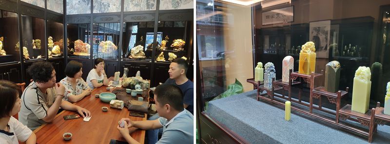 在此期间,山水拍卖及山水网拍充分利用承接县市拍卖传统业务等时机,调动各方面的社会资源,密切关注以“丽水三宝”为代表的地方特色工艺品行业动态,并相继赴龙泉和青田开展专题调研。与中国影视刀剑代表性人物剑村,G20等国宴用瓷器提供人郑峰,龙泉龙窑非遗传承力将张曦,较早与国内一流的艺术品拍卖行合作的青瓷人季友泉;青田石雕产业保护和发展局副局长周良云,青田县政通石雕文化发展有限公司(国有独资)董事长兼总经理张昆荣、副董事长兼副总经理张慧,青田石电子商务协会会长刘宙,微拍堂·有匠青田石雕主推人杨树亮,山水网拍青田石雕创新挂件首位合作商范永春,青田印章石协会会长、智能石雕创新第一人***,以及青田农村商业合作银行副行长王永平、资产管理部总经理及青田石雕抵押监管仓联系人朱正伟等业内专家,求教问道,寻洽合作。