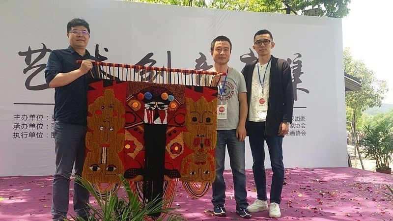 中国画院党委副书记、执行总监侯茜老师成功拍得一件由龙泉铸剑师胡小军铸造的如来生茶刀(胡小军曾为《赤壁》、《无极》等多部电影主角打造名剑),图为侯茜老师(右一)对市特殊教育学校创意美术开展情况给予指导。