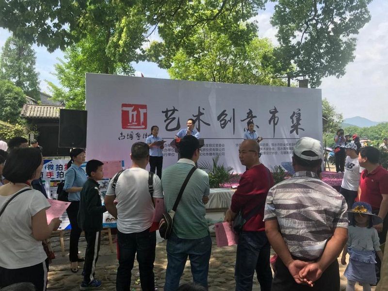 多肉组合花篮、古堰画乡果酒、玫瑰酱、畲族原创抱枕、竹炭礼盒、青瓷花瓶、主题油画、壁挂艺术品、名师茶刀、手工艺船、手工艺包、华为手机等20件拍品,其中8件为零元起拍。经过激励的竞拍,共成功拍出拍品17件,成交金额6445元,为艺术创意市集活动增添了一抹亮色。