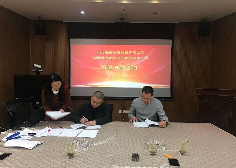 12月8日,山水融资租赁股份有限公司(以下简称“山水融资租赁”)与湖南普亲老龄产业发展有限公司(以下简称“湖南普亲”)回租项目签约仪式在湖南长沙举行。山水融资租赁公司副总裁、长沙事业部总经理连伟平带领长沙事业部人员见证了签署过程。