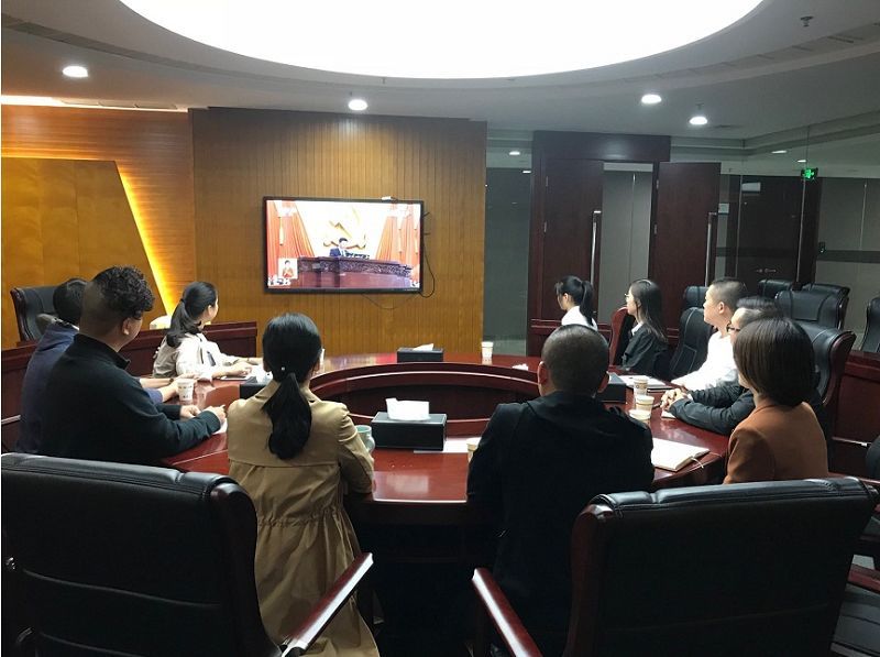2017年10月18日上午9时,山水集团全体党员来到会议室,激动地收看中国共产党第十九次全国代表大会开幕式,聆听习近平代表第十八届中央委员会向党的十九大作报告。驻外党员也通过网络发来了他们收看直播的情况。