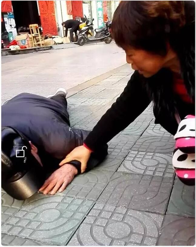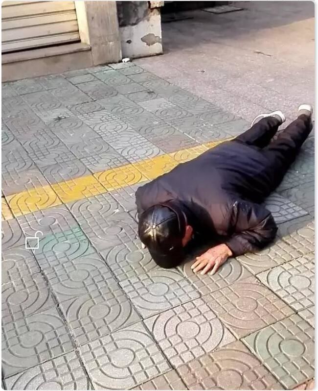 12月4日下午16:00时许,丽阳街丽水日报社门外,一位老人四肢微张趴在人行道上,帽子盖住了额头,不见动弹。边上有几位市民驻足说着什么,或顾忌,没有上前帮扶。