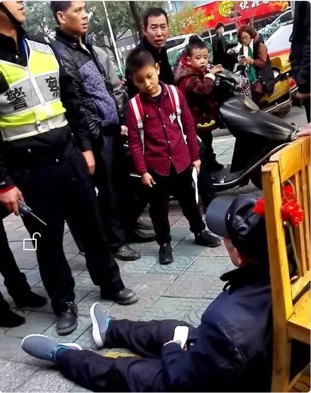 群人正手足无措,一交警骑着摩托巡逻过来,陈建东远远招呼交警同志。同时,人群中递过来一把椅子。警察同志来了,大家的心也就更定了,又试图将老人家完全扶起。鉴于不知其伤情,只能就地压住椅子,让老人家有个依靠。