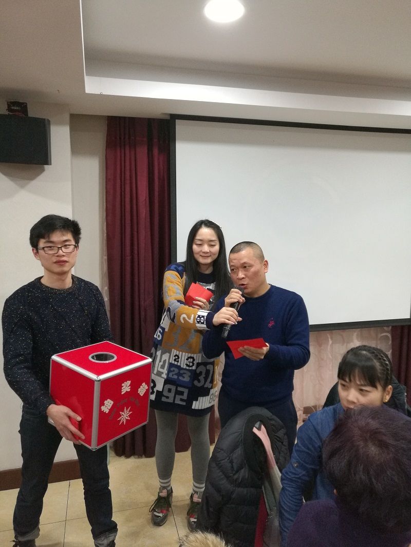 又到一年一度年会抽奖进行时,总裁陈建平为参会人员抽取二等奖5名。