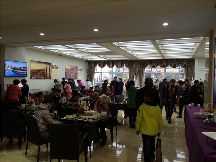 下午一点左右,活动尚未开始,客人们已陆续抵达现场,有的站在沙盘模型边上讨论中意的户型,有的坐在项目部特意准备的休息区座椅上休息,现场人群熙熙攘攘,气氛非常热烈。